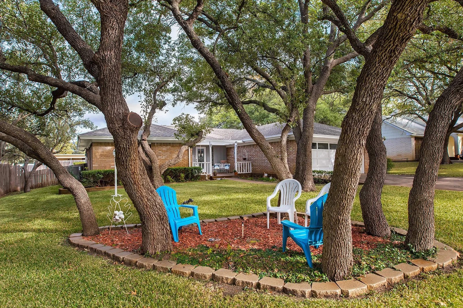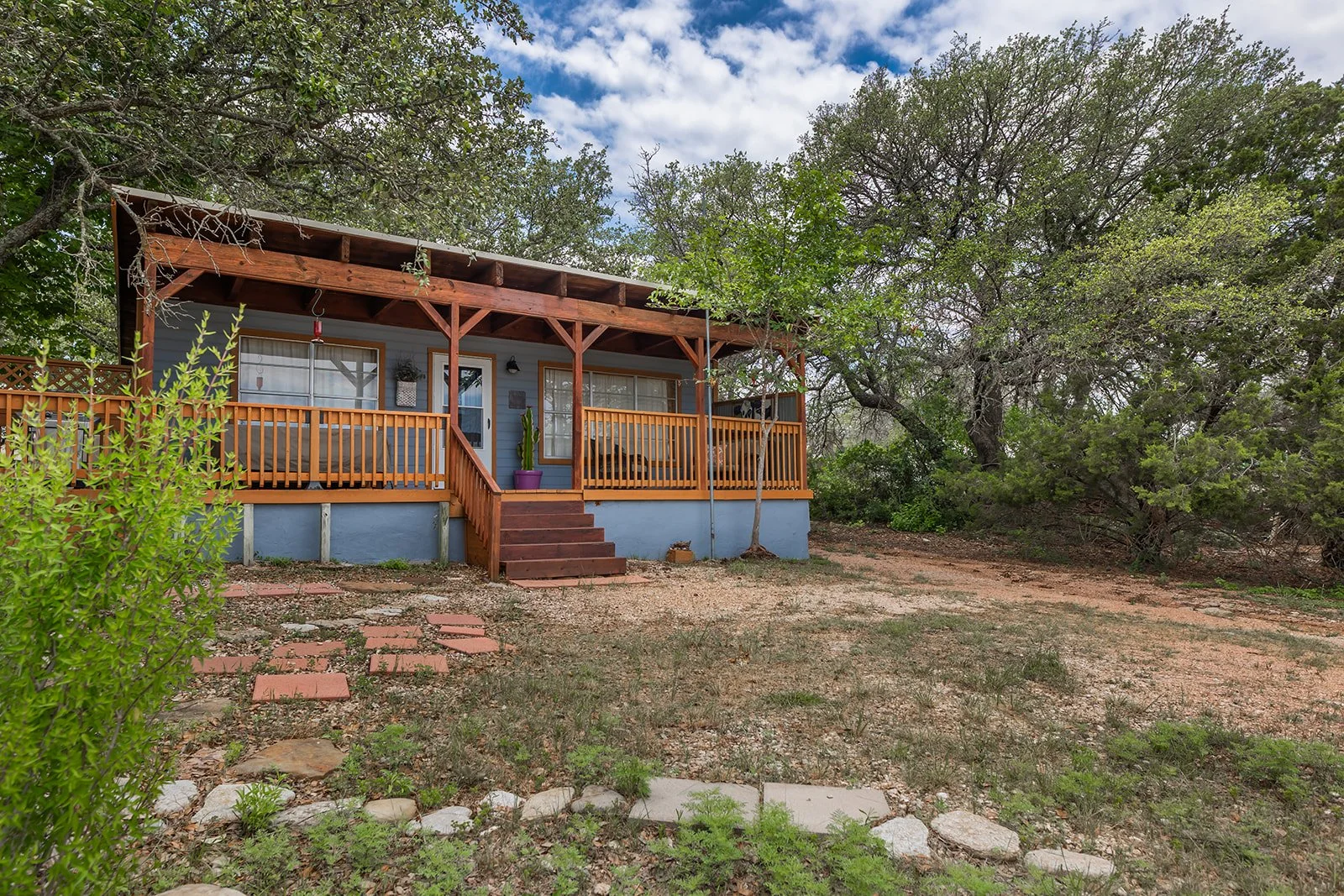 Every inch of this property is DELIGHTFUL, from the beautifully shaded front yard, to the lovely open concept home, then outside to another relaxing oasis of privacy, all on a lovely street in the Heart of Texas. Upon entering the nice foyer, the home boasts of a vaulted living room with exposed beams and cedar shakes detail, to a curved hearth below a wood burning fireplace. The updated kitchen beckons you with granite counters, matching white appliances and cabinets, double ovens, and large additional pantry and cabinet area. The dining area offers both good space and natural lighting! The primary bedroom takes the spotlight with a large bedroom and en suite bath, complete with marble counters, large walk in closet, and beautifully tiled oversized shower. The other two bedrooms have plantation shutters, and another full bath. The sprinkler system's great work is evident on this home and the yards are truly perfect; the porch and patios add to the comfort of the place. Enjoy forever!