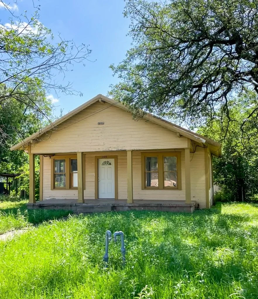 Charming Two-Bedroom Home with Bonus Room and Spacious Backyard This inviting two-bedroom home offers a versatile bonus room, perfect for an office, playroom, or whatever suits your needs. The centrally located full bath provides accessibility with a walk-in shower. The tall ceilings enhance its spacious, airy feel, and the original hardwood floors add timeless character throughout. Enjoy the charming front porch, or relax in the expansive backyard shaded by towering pecan trees. The property also includes a durable metal roof, providing long-lasting protection and peace of mind. Call for a showing!